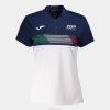 Polo shirts with customized buttons on the collar and side openings on the waist.