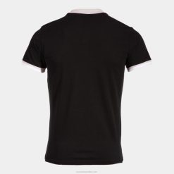 Polo shirt that is characterized by the contrast in color between the neck and the front with respect to the yoke and the sleeves. Buttoned collar and embroidered logo.
